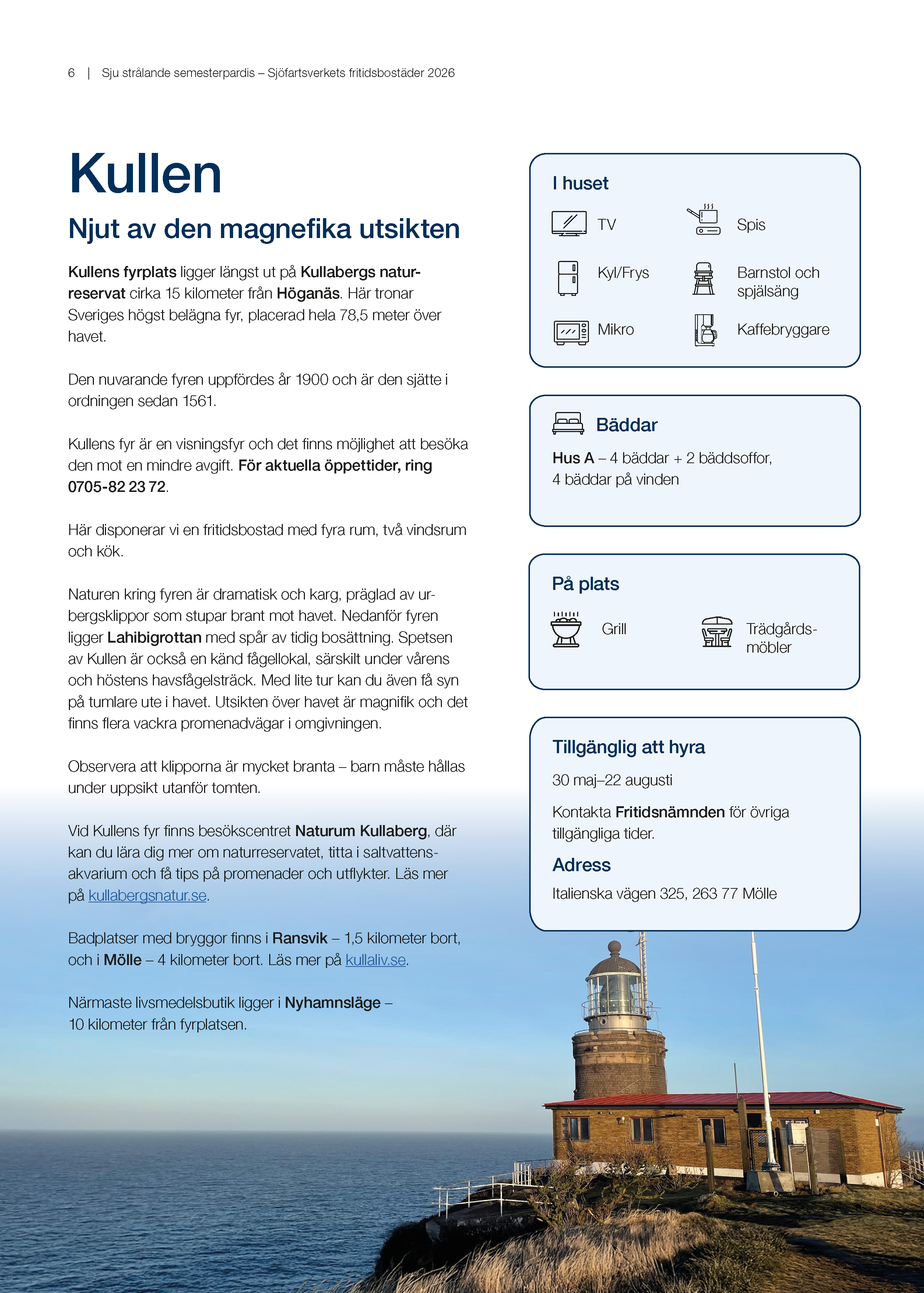 OBS! Bokningar av Kullens fritidsbostad till våren 2026 kommer ej att vara möjlig i detta skede. Utan öppnar igen för uthyrning när högsäsongen börjar.