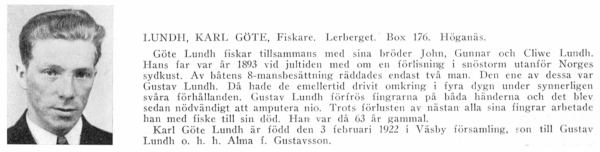 Gustaf Albert Petersson Lundh född 1875, yrke Fiskare
