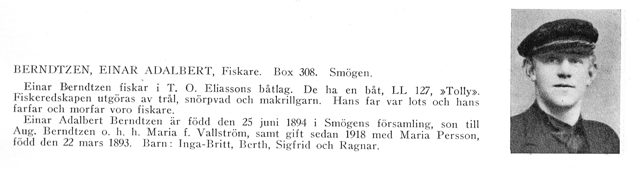 Född 1894 Kungshamn, Gbg o Bohus län