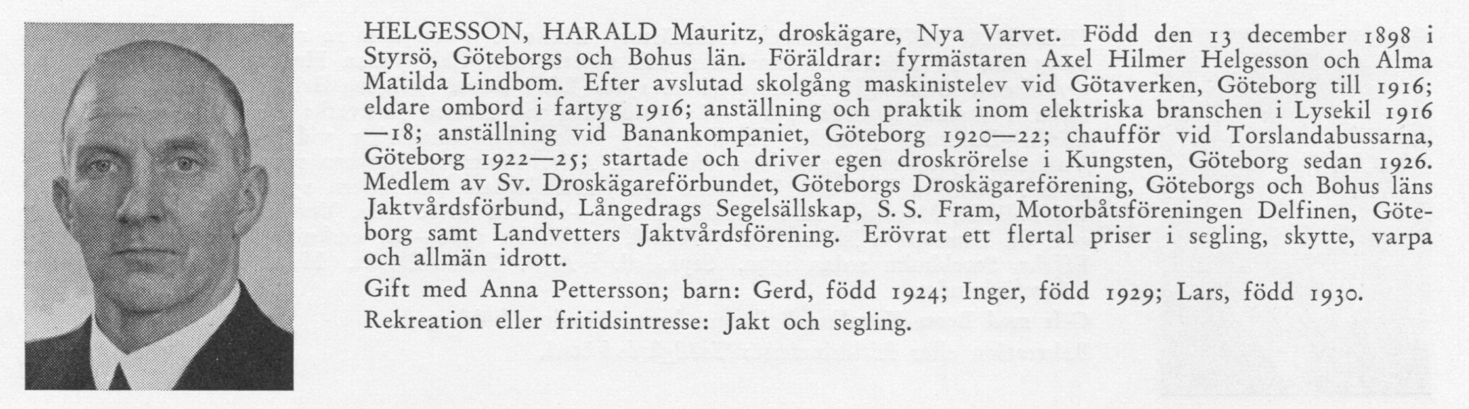 Född 1898 Styrsö, Gbg o Bohus län