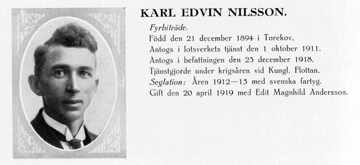 | Fyrbiträde | Hallands Väderö | 1918-12-23 - 1926-06-10 |
