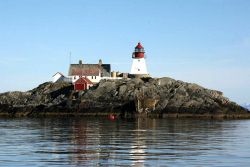 Moholmen, norsk ledfyr och f.d. bemannad fyrplats på insidan av Lofoten ovan polcirkeln i nordligaste Norge, Nordland fylke. Norska havet. Bemannad 1914-1974.