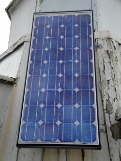 solpanel, anordning som med solceller omvandlar energi från synligt ljus till elektrisk energi.